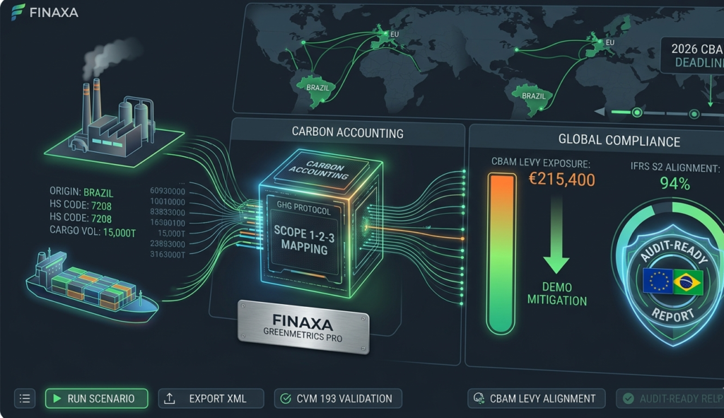 O Finaxa.me desenvolveu este conteúdo para separar o ruído da solução prática. Com a implementação definitiva do CBAM na Europa e da Resolução CVM 193, o cálculo de emissões tornou-se um item de balanço patrimonial.